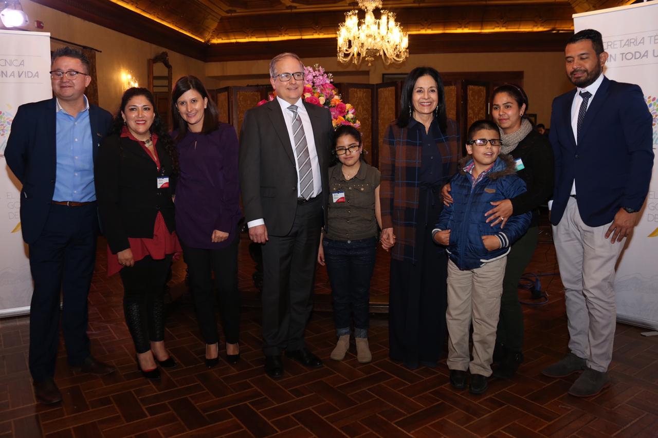 Quito (Pichincha).- Este miércoles, la secretaria Técnica del Plan Toda una Vida Isabel Maldonado junto a la Presidenta del Comité del Plan Rocío de Moreno, participaron en la entrega de dos dispositivos OrCam, a Junior Zambrano de 10 años y Danna Cruz de 11 años edad, quienes tienen discapacidad visual y que ahora podrán mejorar su calidad de vida.