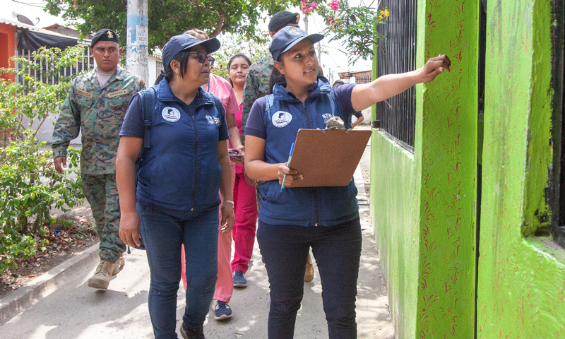 La Brigada interinstitucional liderada por Las Manuelas recorre puerta a puerta los hogares de más de 8 mil personas, en Socio Vivienda I en Guayaquil, para identificar a las familias donde alguno de sus miembros presenta una discapacidad.