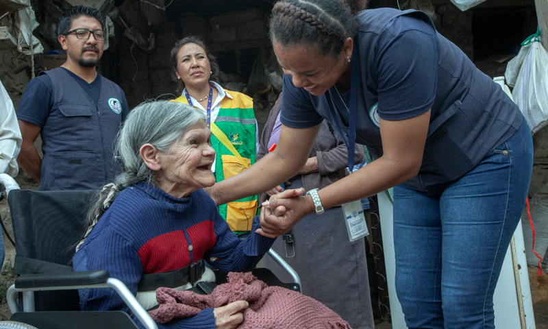 María Chicaiza de 81 años, con el 91% de discapacidad también le entregaron una silla de ruedas, al igual que Laura de 64 años. Ambas recibirán apoyo integral al igual que sus familias.