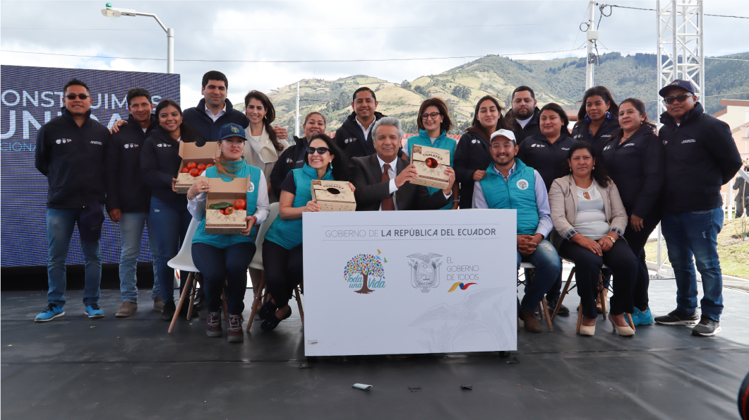 Previo al evento, el Jefe de Estado constató las iniciativas productivas emprendidas por los beneficiarios del proyecto habitacional que, con la asesoría de los gestores comunitarios, desarrollan el cultivo de alimentos cien por ciento orgánicos (como tomates), cuya producción semanal alcanza los 200 kilogramos. Además, conoció el invernadero y los huertos construidos, los cuales son cultivados y cuidados de manera integral por los habitantes de Huarcay; y reconoció el trabajo de Rocío González, quien lidera las acciones del Comité Interinstitucional Plan Toda una Vida, por los logros hasta ahora alcanzados.